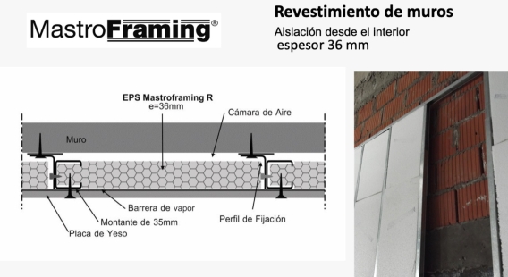 Mastroframing R , es una solución para revestir muros exteriores desde el interior , reduciendo la conductividad térmica del muro en un 50% .